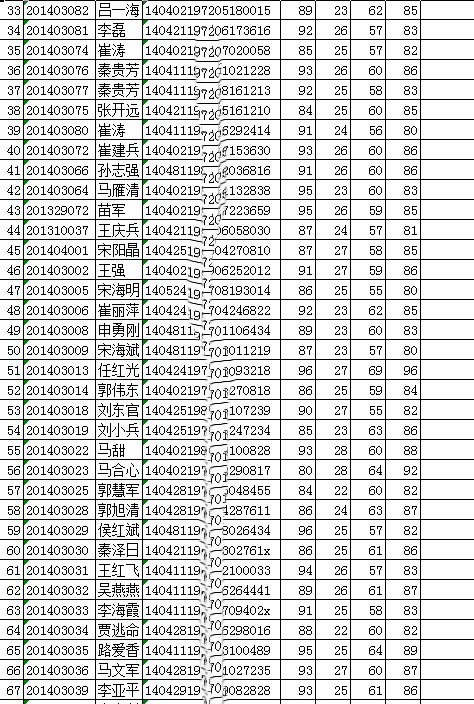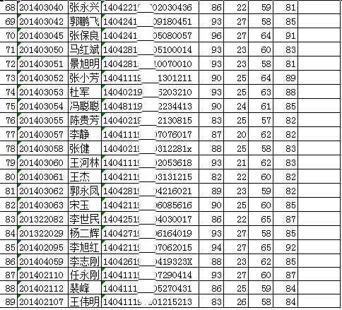 : 6月11日考试合格成绩单 未公布成绩的即为不合格 因个人隐私将身份证号码处理