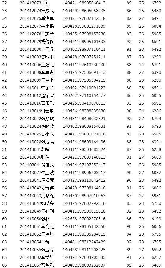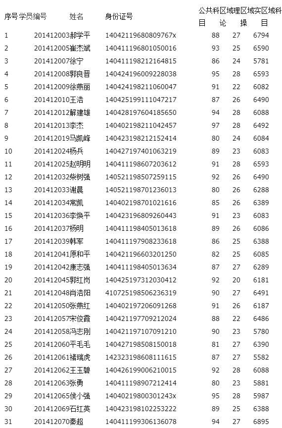 2014年11月5日日考试合格成绩单